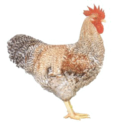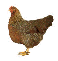 Schnellwüchsiges, wetterhartes, schweres kennfarbiges Huhn mit guter